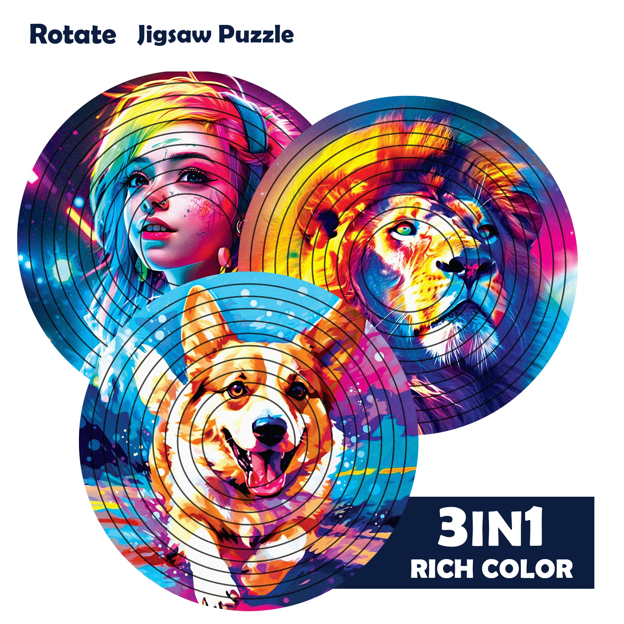 New Decompression Irregular Rotate Jigsaw Puzzle Color Animal Rotating Puzzle Puzzle Montessori Toy Children's Birthday Gift